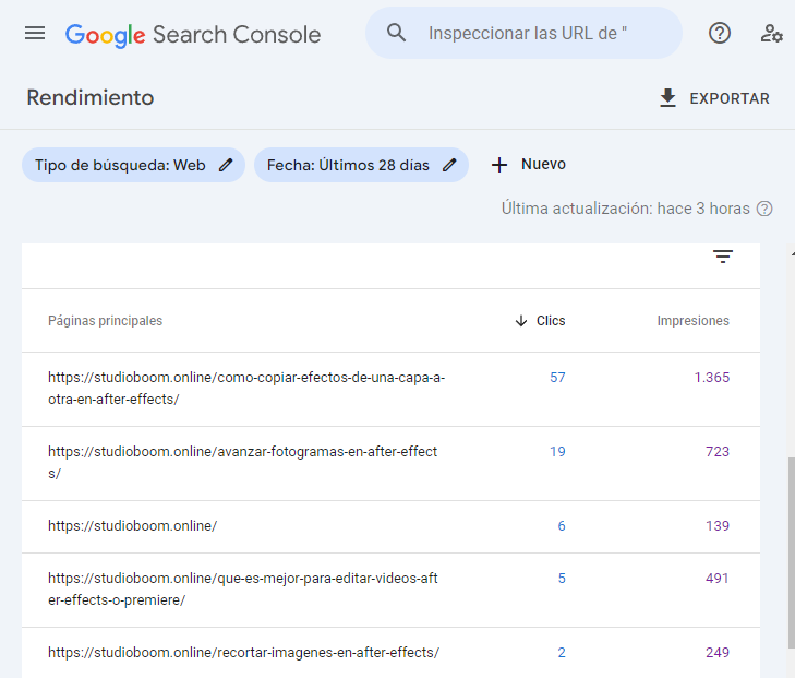 - Datos de la analítica de Google Search Console